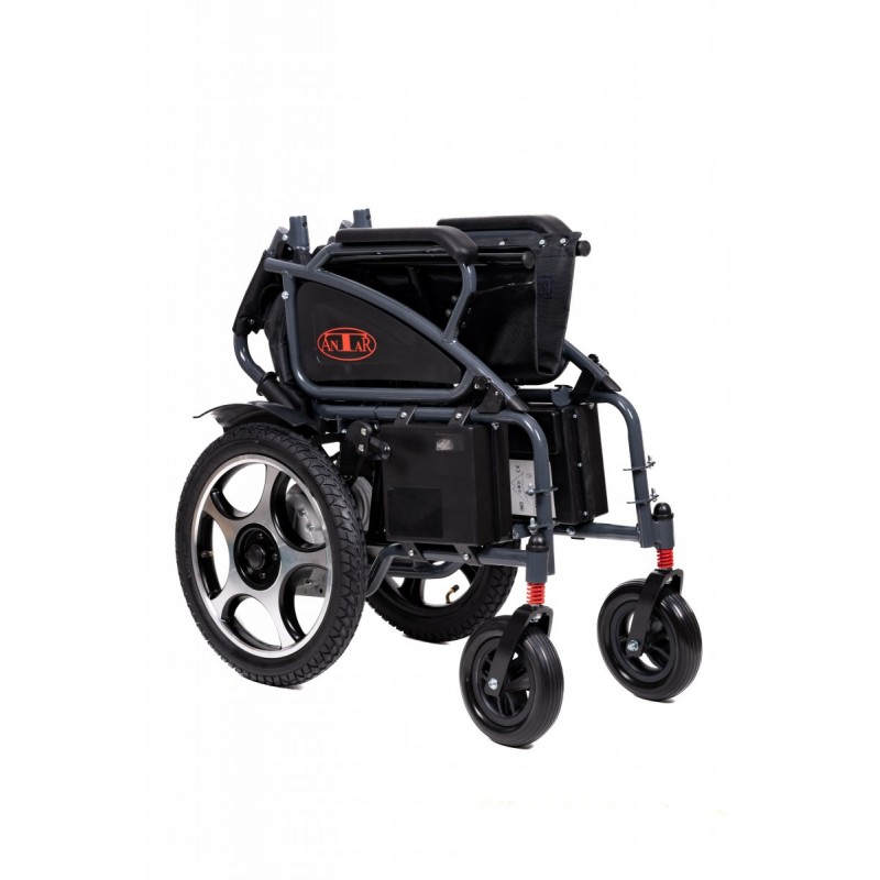 Model wózka AT52321 został wyposażony w zdalny pilot sterujący, który bardzo ułatwia prowadzenie wózka przez pomocnika, antypoślizgowe podłokietniki oraz odpinane podnóżki. Dodatkowo w komplecie znajduję się pompka do kół oraz uchwyt na kubek.