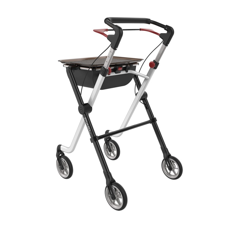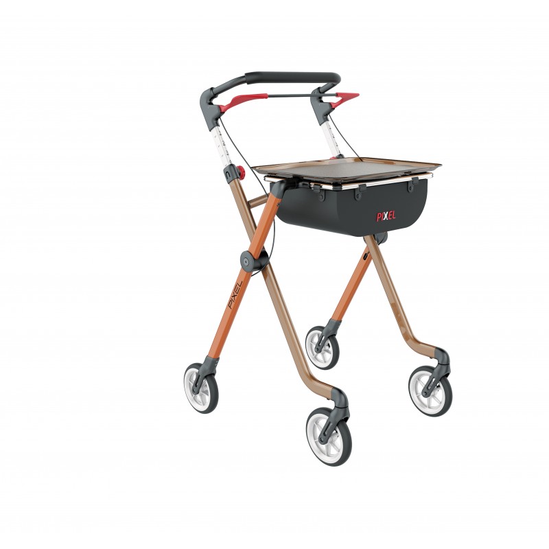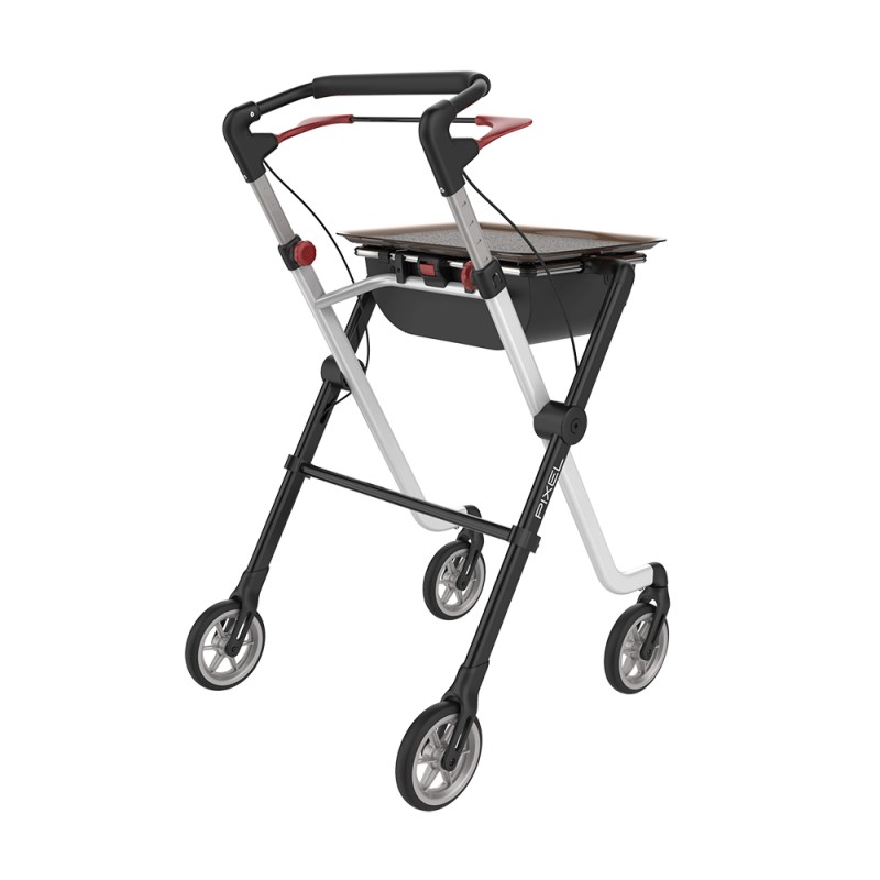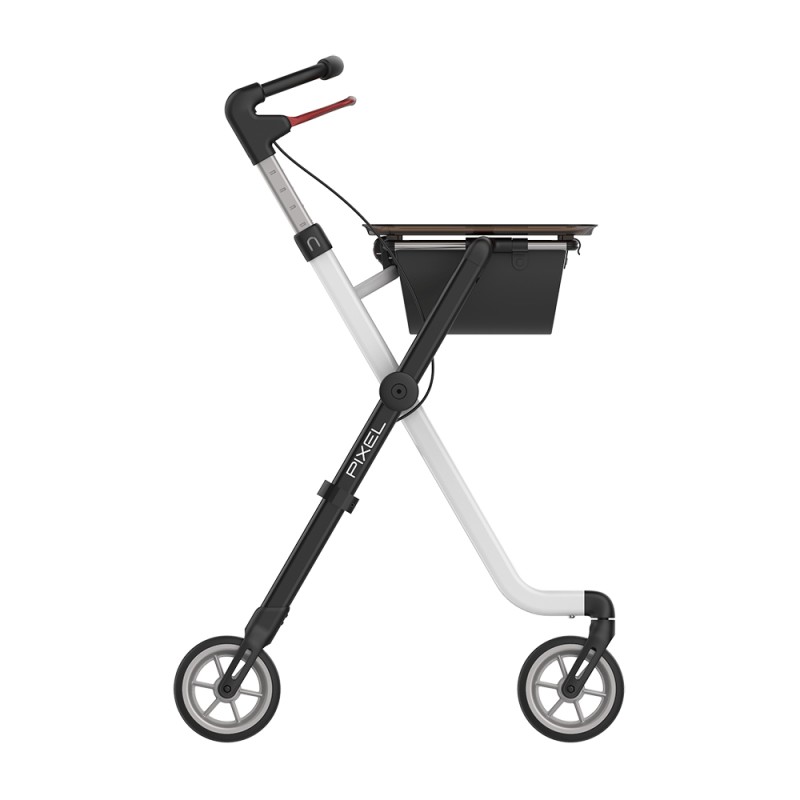Pixel został zaprojektowany specjalnie do użytku wewnątrz pomieszczeń. Stylowy chodzik z opatentowanym zatrzaskiem blokującym "Click and safe" ma dużą tackę i w razie potrzeby może być używany jako praktyczny stolik. Miękkie, amortyzujące wstrząsy koła i innowacyjna flexi Rama ułatwiają pokonywanie małych przeszkód takich jak, np. progi w drzwiach. Balkonik ten dostępny jest w trzech wyjątkowych kolorach.
