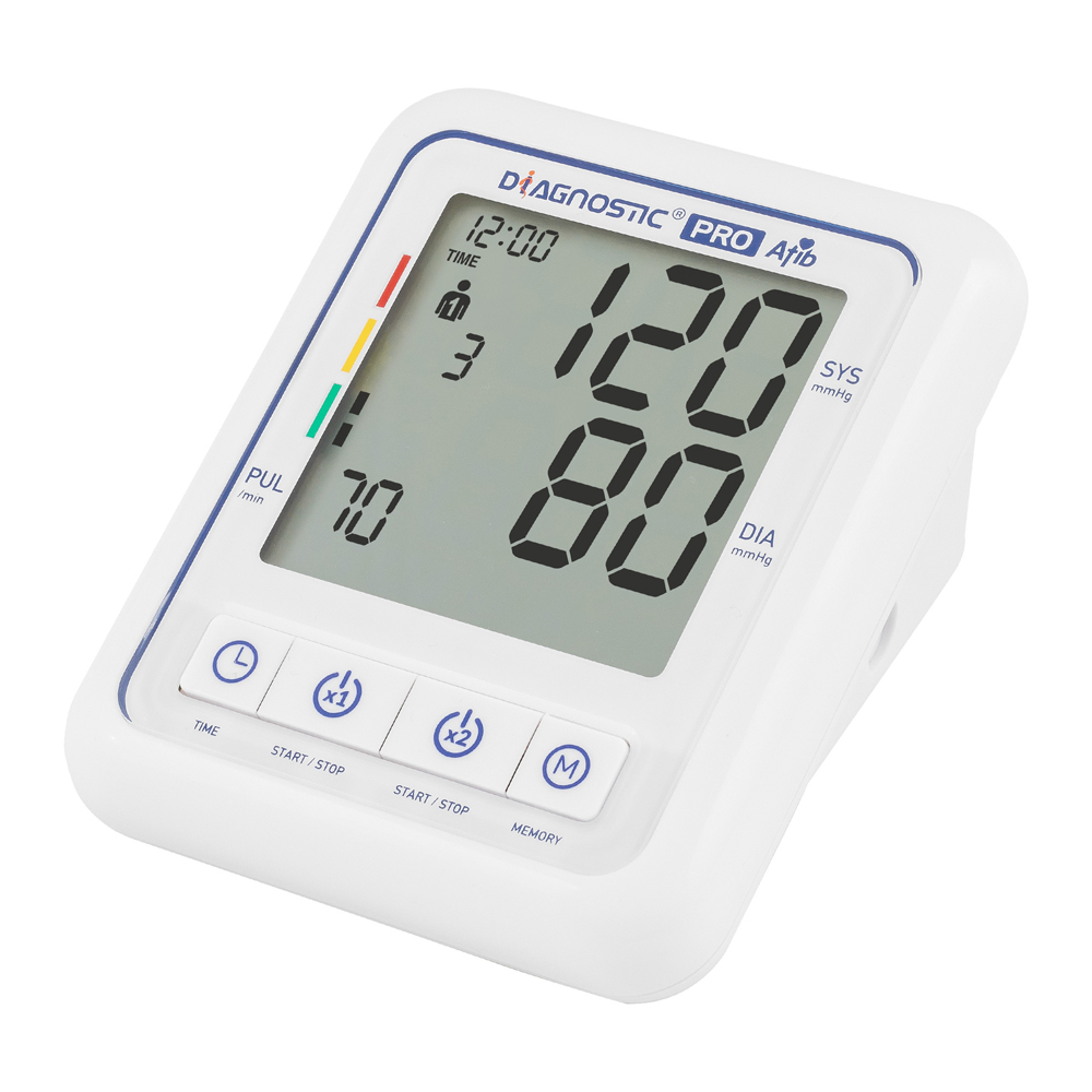 Ciśnieniomierz Diagnostic PRO Afib to w pełni automatyczne cyfrowe urządzenie do pomiaru ciśnienia krwi na ramieniu, umożliwiające wykonanie pomiarów ciśnienia skurczowego i rozkurczowego, a także tętna przy pomocy metody oscylometrycznej. Urządzenie to zapewnia wysoką dokładność pomiarów.