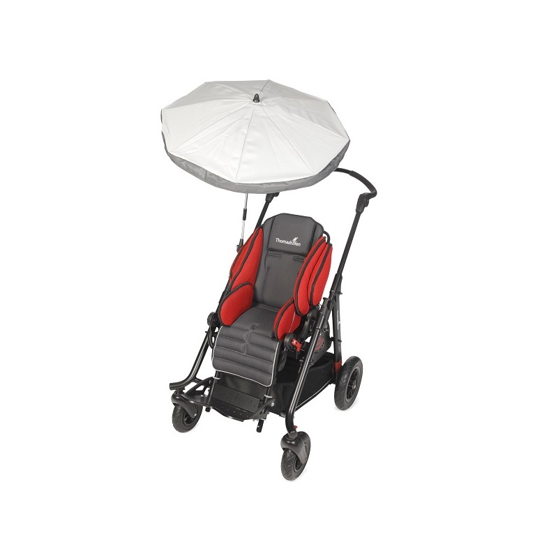 Parasolka składana, chroni przed deszczem i słońcem. Montowana na ramie wózka.