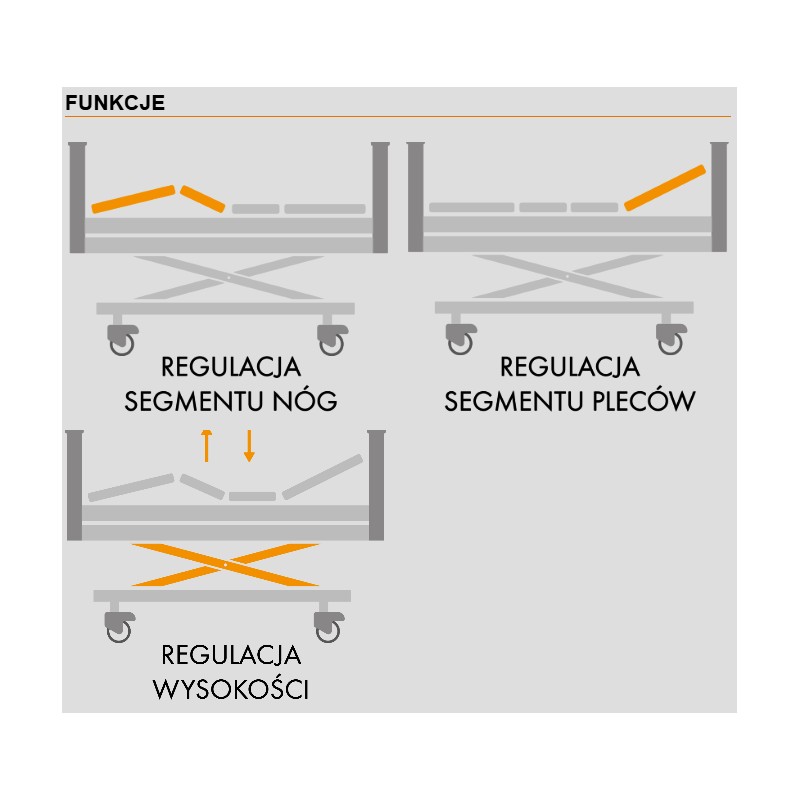 Komfort prezentowanego łóżka rehabilitacyjnego gwarantują wspomniane wcześniej funkcje jak np. regulacja wysokości leża. W pełni elektryczna regulacja pozwala na bezproblemowe korzystanie z powyższego produktu przez samego seniora czy personel placówki medycznej. Funkcja ta ma kolosalne znaczenie w przypadku osób otyłych i niskich gdzie wchodzenie i schodzenie z łóżka po operacjach ortopedycznych jak np. endoprotezy stanowi nie lada wyzwanie.