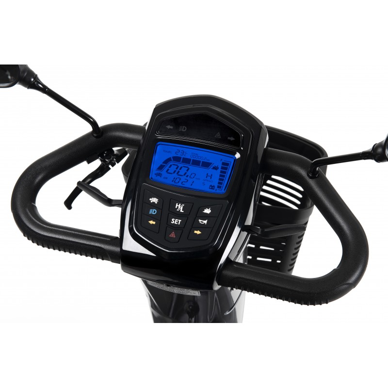 • Wyposażony w panel sterujący LCD, który informuje min.o poziomie naładowania baterii, awarii, godzinie , prędkości , temperaturze powietrza.
