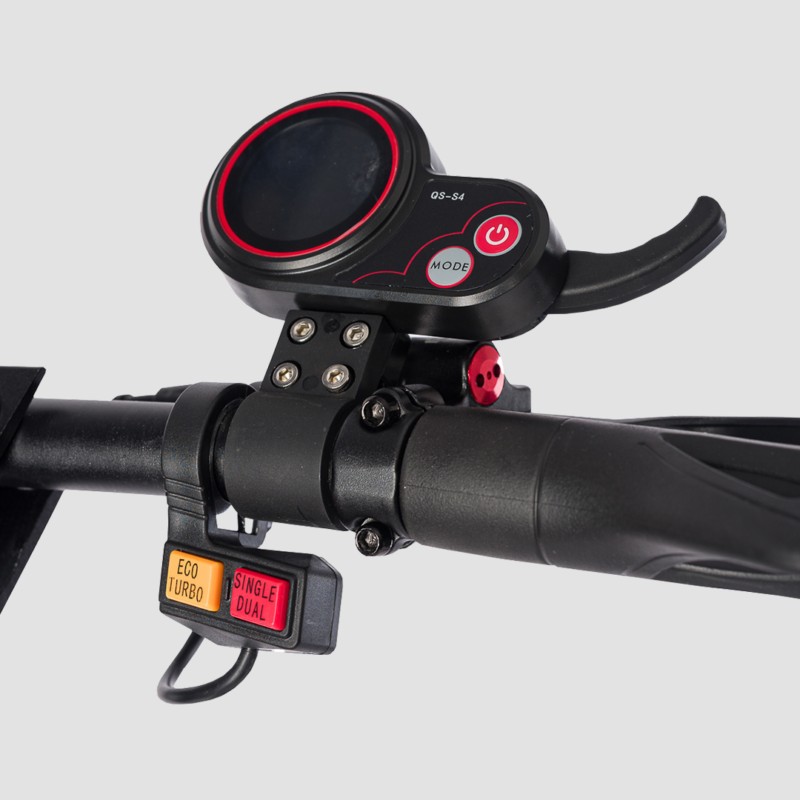 Z dodatkowego wyposażenia można wyróżnić wyświetlacz pokazujący wszystkie parametry hulajnogi z możliwością zaprogramowania przyspieszenia oraz maksymalnej prędkości. Na wyświetlaczu znajdziemy szereg informacji odnośnie pojazdu: stan baterii, prędkość poruszania się oraz przebieg pojazdu.