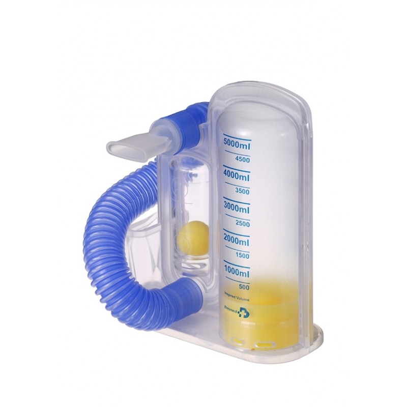 Wolumetryczny spirometr motywacyjny to urządzenie przeznaczone do trenowania lub stymulowania powolnego i głębokiego wdechu u pacjentów z powikłaniami oddechowymi. Regularne powtarzanie ćwiczeń z głębokim oddychaniem pomaga odzyskać napięcie mięśni biorących udział w oddychaniu, zapewniając poprawę parametrów funkcji oddechowych. Wolumetryczny spirometr motywacyjny pozwala pacjentowi wizualizować postępy ćwiczeń, poprzez wskazanie odpowiedniego wolumenu wyznaczonego jako cel treningowy. Spirometr jest przeznaczony dla osób dorosłych, do użytku wyłącznie przez jednego pacjenta.