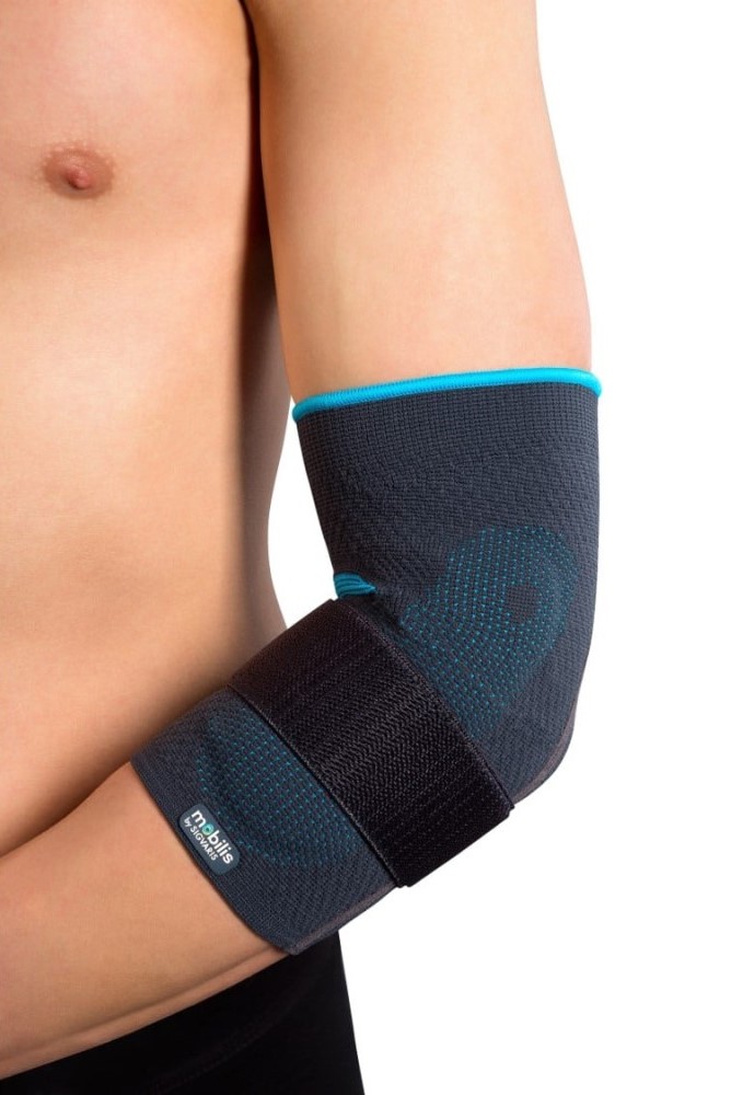 Wysięki w stawach, podrażnienie, przewlekłe stany zapalne i obrzęk powodują ból. Stabilizator łokcia Mobilis EpiActive idealnie otacza i podtrzymuje łokieć. Peloty masują i odciążają przyczepy ścięgien. Anatomiczny kształt i dzianina 3D gwarantują ideale dostosowanie i wysoki komfort noszenia. Pasek umożliwia dodatkową redukcję siły kompresji.