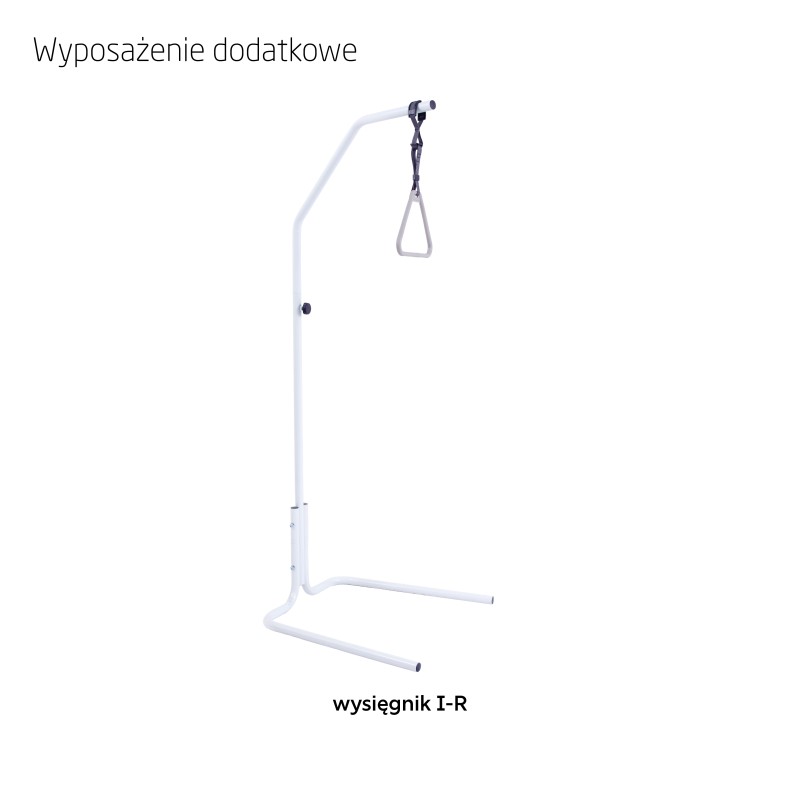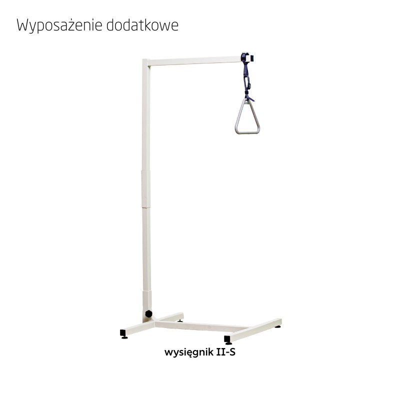 - wyposażenie dodatkowe: wysięgnik I-R (profil okrągły), wysięgnik II-S (profil kwadratowy), barierka zabezpieczająca, stolik nad łóżkowy