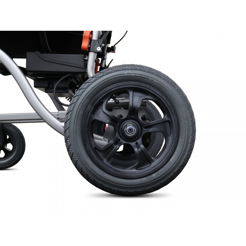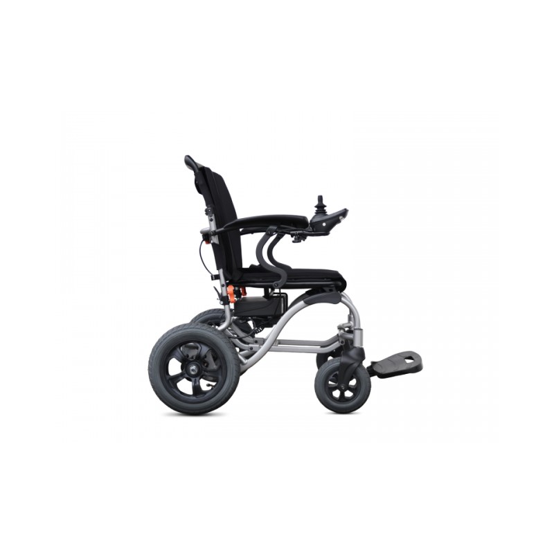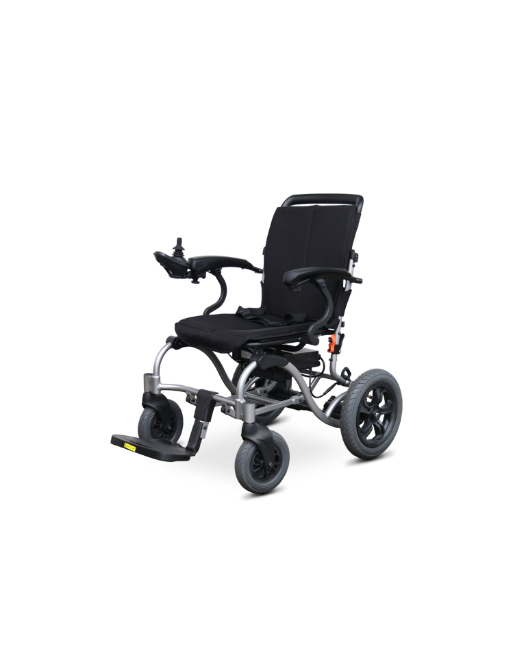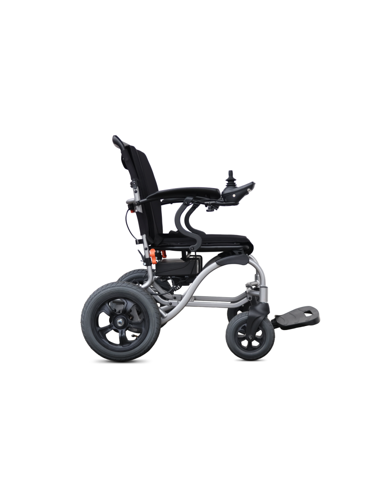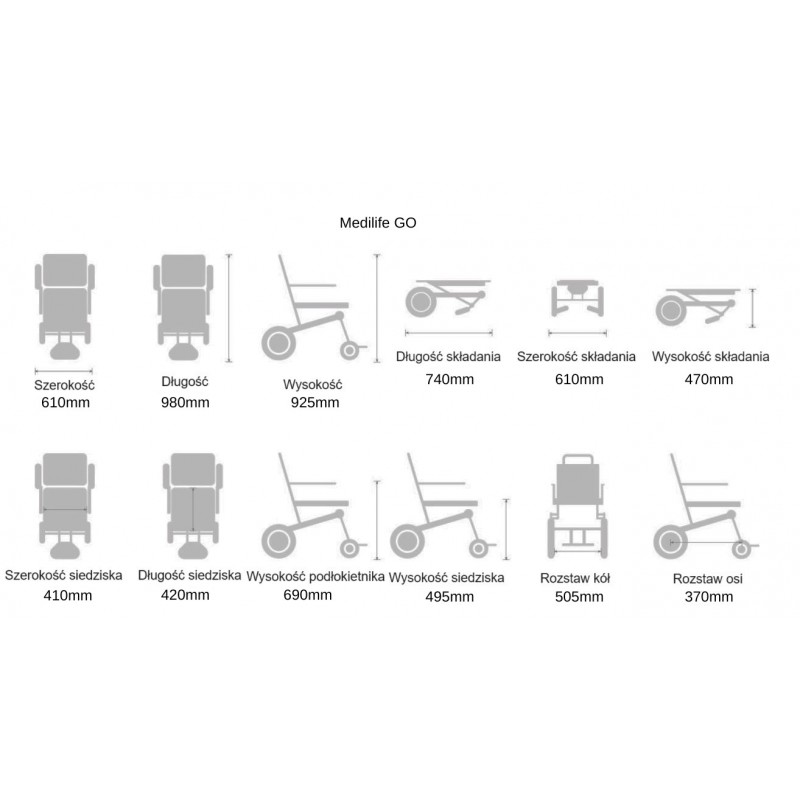 MEDILIFE GO to wózek inwalidzki składany o wadze 24 kg, którego głównym atutem jest możliwość złożenie wózka do niewielkich rozmiarów ułatwiając tym przechowywanie jak i transport wózka. W wózku zastosowano pompowane tylne koła 12” oraz przednie koła lane o wymiarze 8”, które zapewniają komfortową jazdę po nierównościach i dając przy tym stabilność i przyczepność podczas jazdy. Wózek został wyposażony w prosty i intuicyjny system sterowania, na którym możemy sprawdzić aktualną prędkość status naładowania baterii włącznik oświetlenia jak i przycisk sygnału dźwiękowego. Joystick został zaprojektowany specjalnie dla wygody użytkownika, ma wyraźne kontrolki oraz gałka sterowania jest płynna i intuicyjna do sterowania.