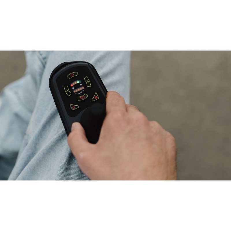 Wózek O2 został wyposażony w bardzo intuicyjne system sterowania, na którym możemy zobaczyć podstawowe informacje takie jak: stopień naładowania baterii, poziom prędkości wózka, włącznik oświetlenia oraz przycisk sygnału dźwiękowego. Samo sterowanie wózkiem jest wygodne i intuicyjne, w wózku zastosowano koła pompowane zarówno przednie jak i tylne sprawiając, że jazda po nierównej nawierzchni jest bardziej komfortowa.