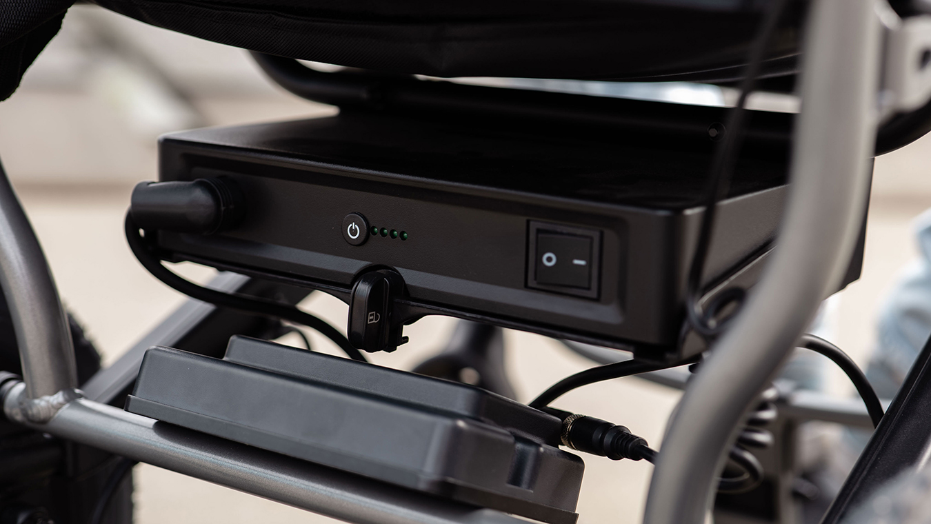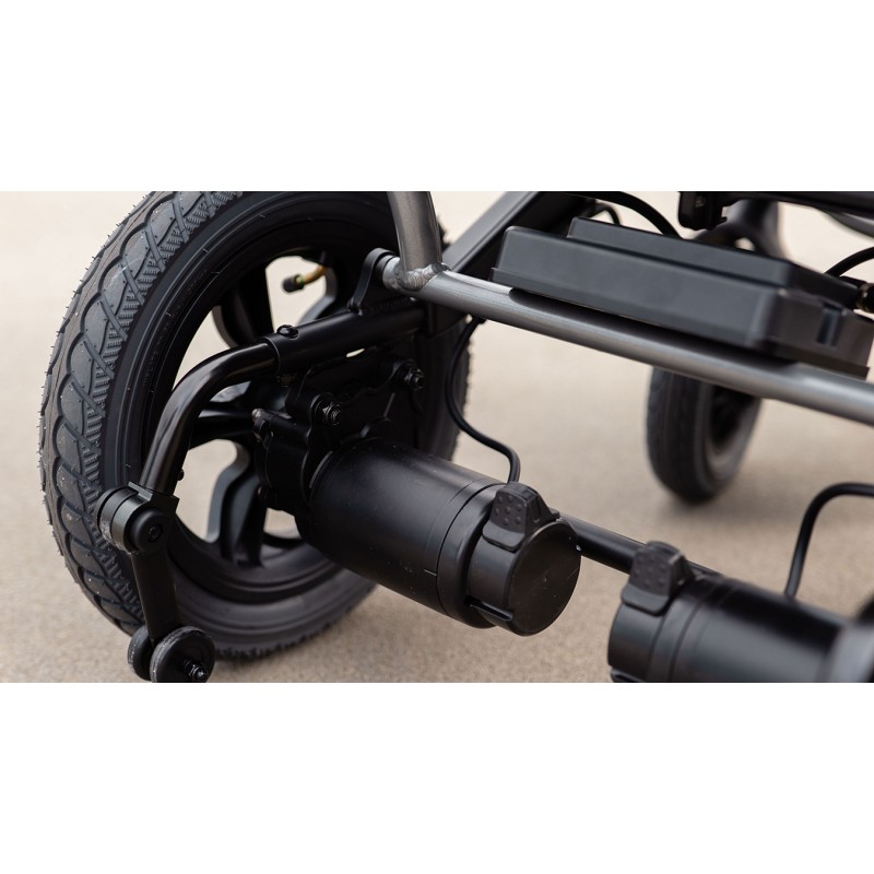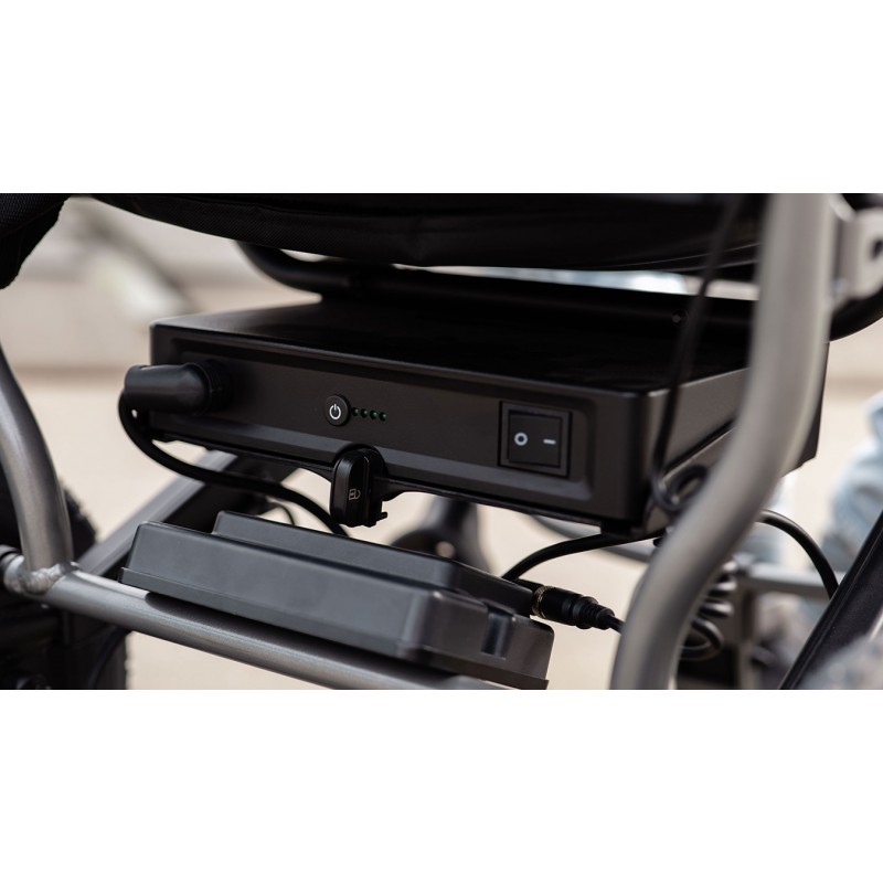 Medilife O2 został wyposażony w akumulator Litowo-Jonowy posiadający pojemność 12 Ah przekładając się to na zasięg maksymalny do 15 km*. Akumulator możemy szybko zdemontować w dowolnej chwili w celu wymiany na drugi akumulator bądź w celu ładowania baterii w innym pomieszczeniu. Wózek Medilife O2 posiada funkcję przełączenia silników w tryb manualny, pozwala to na swobodne prowadzenie wózka za pomocą wygodnych i ergonomicznych rączek.