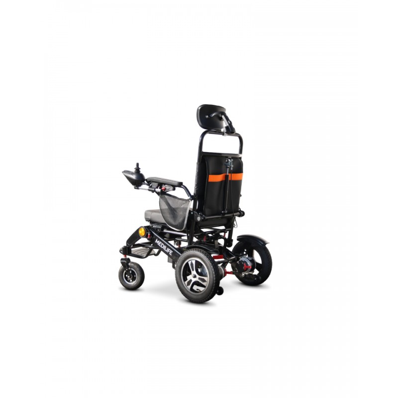 Wózek Medilife STELVIO został wyposażony w dwa silniki o mocy 250 W każdy, z funkcją elektromagnetycznego hamulca, co zapewnia płynną i bezpieczną jazdę. Dzięki zastosowaniu wysokiej jakości baterii litowej 24 V/ 20 AH użytkownik może pokonać dystans 20–22 km na jednym ładowaniu, co umożliwia wygodne planowanie dłuższych tras bez obaw o częste doładowania. Urządzenie posiada intuicyjny panel sterujący, który pozwala monitorować poziom naładowania baterii, prędkość oraz włączać oświetlenie i klakson. Obsługa joysticka jest niezwykle prosta i pozwala na precyzyjne manewrowanie wózkiem.