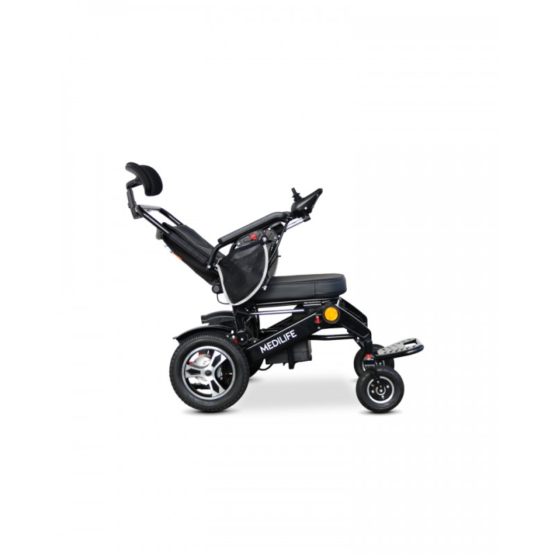 W modelu STELVIO zastosowano pompowane koła przednie i tylne, co znacząco poprawia komfort jazdy na nierównych nawierzchniach. Wózek można również wygodnie prowadzić manualnie przez asystenta – wystarczy przełączyć silniki w tryb manualny, by umożliwić ręczne prowadzenie. Jedną z unikalnych cech wózka Medilife STELVIO jest możliwość odchylenia oparcia do 140 stopni, co pozwala przekształcić go w wygodne miejsce do odpoczynku. Funkcja ta umożliwia użytkownikowi relaks lub krótką drzemkę w dowolnych warunkach, gwarantując maksymalny komfort i wsparcie dla ciała, niezależnie od otoczenia.