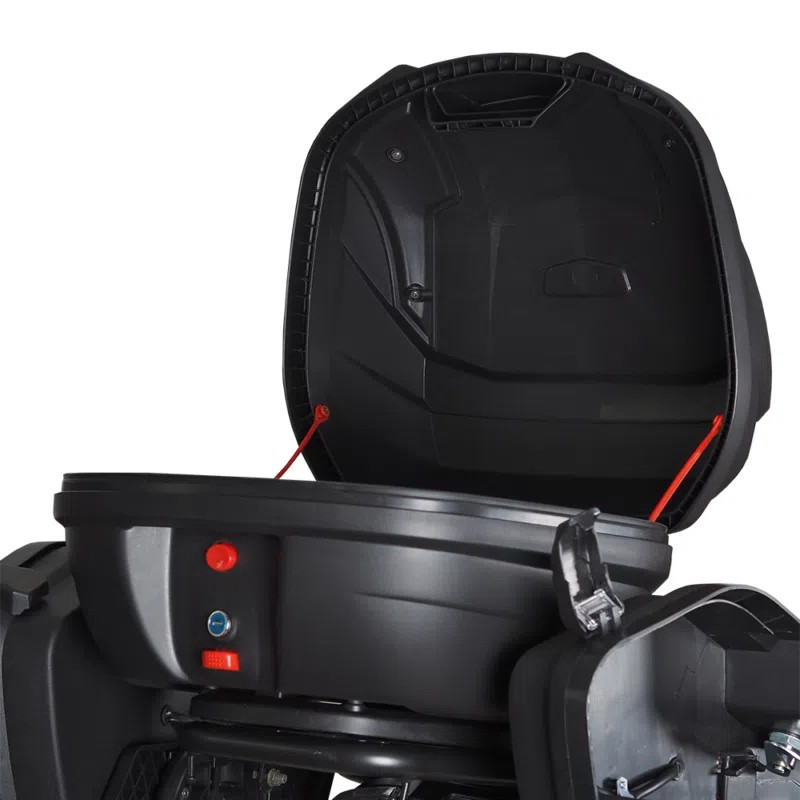 Motocykl T-REX posiada dwie opcje dodatkowego wyposażenia, w wersji standardowej znajdziemy pojemny schowek pod siedzeniem, 2 schowki przy kierownicy oraz trzeci centralny schowek w którym znajdziemy port ładowania. Możemy również wybrać płatną opcję, który posiada dedykowany komplet 3 pojemnych kufrów który świetnie sprawuje się na zakupy lub w przypadku dalszych wyjazdów.