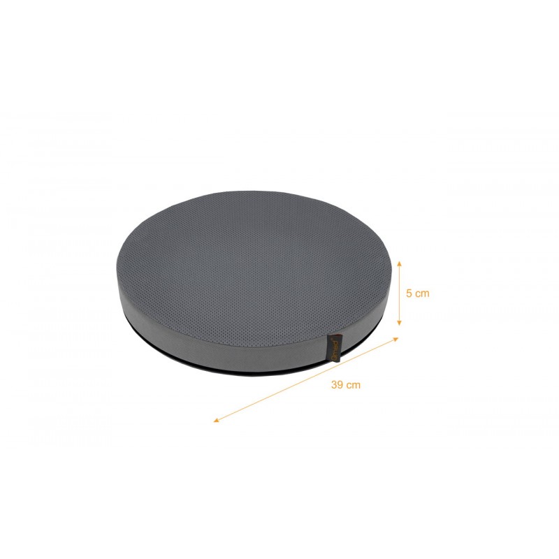 Miękka Poduszka obrotowa wykonana z pianki z pamięcią kształtu, z włóknem bambusowym oraz z dodatkiem żelu chłodzącego. Jest to produkt dedykowany osobom spędzającym wiele czasu w pozycji siedzącej, na różnego typu fotelach i krzesłach. Zakres ruchu 360° pozwala na łatwy obrót w wybranym kierunku. W szczególności polecana jest osobom ze schorzeniami kręgosłupa, o ograniczonej możliwości wykonywania obrotów ciała. Stosowanie obrotowej poduszki wspiera również osoby niepełnosprawne, np. podczas przesiadania się na wózek. Antypoślizgowa powierzchnia podstawy ogranicza przesuwanie się poduszki w trakcie użytkowania.