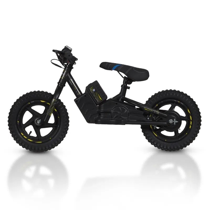 Wersja 121E 12'' posiada 12 calowe koła którą poleca się dla dzieci pomiędzy 3 a 6 rokiem życia ze względu na bezpieczeństwo dziecka. Rower wyróżnia się wyjmowaną baterią która umożliwia szybką i bezstresową wymianę baterii w przypadku awarii. Wyjmowana bateria umożliwia także bezpieczeństwo dziecka podczas nauki jazdy rowerem. Bateria jest litowo-jonowa o pojemności 21V 6Ah i napędzie 200 W co daje nam max. prędkość do 20 km/h oraz 15 km zasięgu. W ofercie jest także dostępny identyczny model o mniejszym rozmiarze 16". Opona terenowa sprawia że rower potrafi dostosować się do każdych warunków jezdnych dbając o naszą wygodę oraz bezpieczeństwo podczas jazdy. Nowoczesny rowerek elektryczny sprawi że nauka jazdy na rowerze przez najmłodszych będzie łagodna oraz pełna dobrej zabawy.