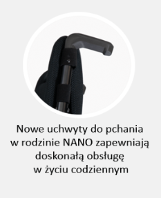 Nowe uchylne podnóżki, zaprojektowane specjalnie dla wózka NANO S, stanowią unikalne rozwiązanie na skalę światową wśród składanych wózków z otwartą konstrukcją ramy. Wyposażone w łatwo dostępny przycisk zwalniający, mogą być obsługiwane nawet przez osoby z ograniczoną sprawnością dłoni, co czyni model NANO S idealnym wyborem dla użytkowników ze schorzeniami neurologicznymi i umożliwia dodatkowo efektywne ćwiczenie nóg. Wózek wyróżnia się również wyjątkową kompaktowością – innowacyjny system składania zapewnia doskonałą sztywność i znakomite właściwości jezdne, a możliwość szybkiego demontażu podnóżków i kół ułatwia transport oraz przechowywanie.