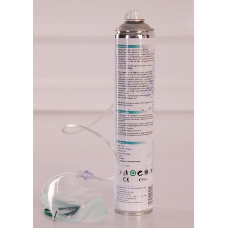 Przenośny tlen inhalacyjny skoncentrowany w niewielkiej rozmiarów puszce o wadze 175g - 15 litrów tlenu. Idealnie sprawdza się jako wyposażenie apteczek i toreb ratowniczych. Pozwala na natychmiastowe podanie tlenu.