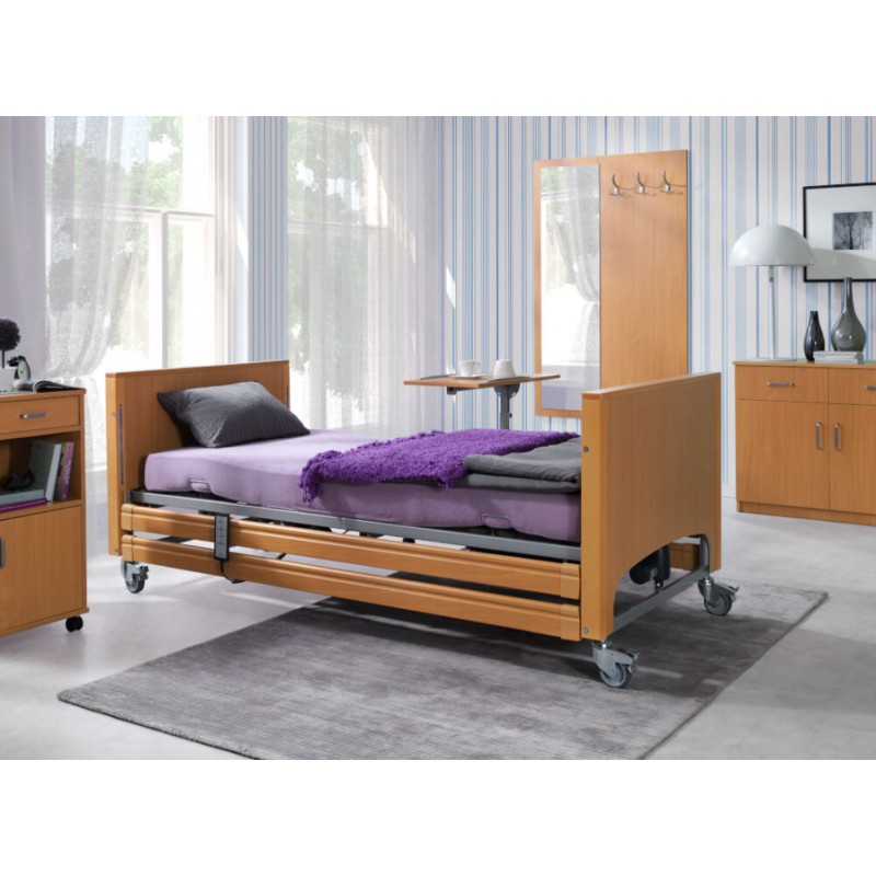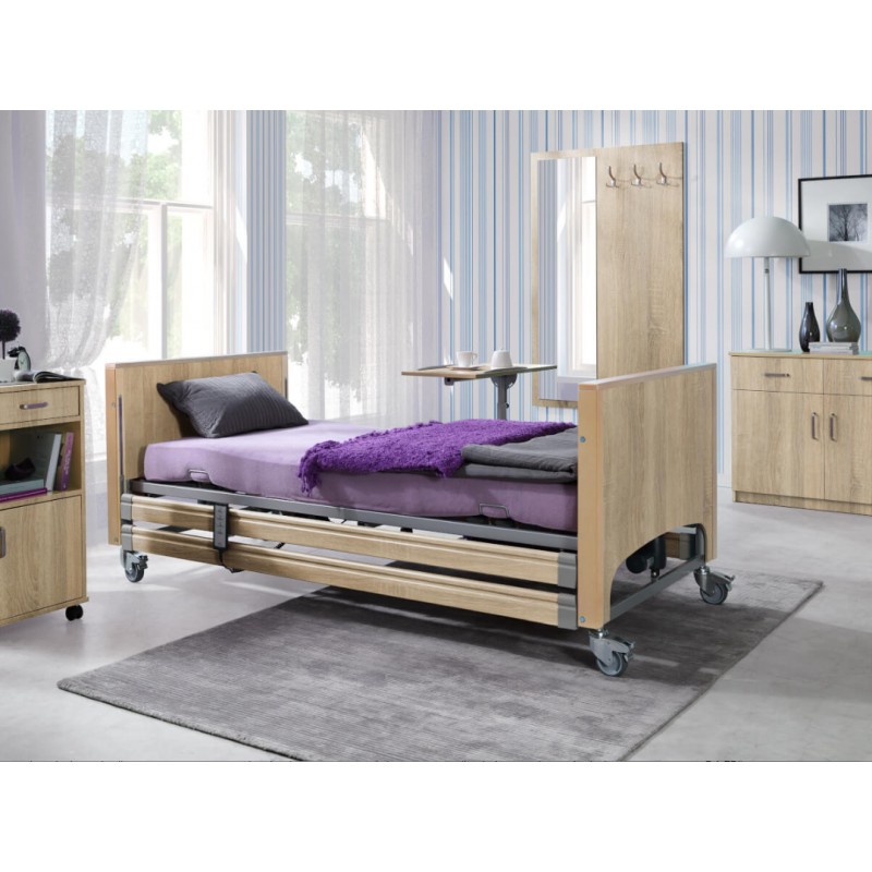 Łóżko rehabilitacyjne Elbur 331 zostało stworzone dla osób ceniących sobie najwyższą jakość wykończenia i materiałów. Dzięki zabudowanym siłownikom szczytowym łóżko przypomina standardowe łóżko co powoduje iż idealnie sprawdza się w środowisku domowy. Również prywatne placówki chcące zaoferować sowim podopiecznym sprzęt najlepszej jakości wybierają ten model. Leże podzielone jest na 4 segmenty wypełnione drewnianymi listwami sprężynującymi, które poprawiają komfort leżenia. Łóżko rehabilitacyjne posiada 2 pojedyncze silniki leża sterowane indywidualnie plus regulowany segment podudzia poprzez mechanizmy zapadkowe. Sterowanie odbywa się za pomocą prostego w obsłudze pilota, posiadającego możliwość blokady poszczególnych funkcji. Na końcach barierek bocznych leża znajdują się sprężynujące nakładki z tworzywa sztucznego powodujące zmniejszanie odległości pomiędzy barierkami a frontem. Niwelują one możliwość przygniecenia kończyn rąk oraz nóg. Stosując innowacyjne rozwiązanie suwaków barierek uzyskaliśmy niższe niż zwykle ich położenie co zdecydowanie poprawia komfort wchodzenia i schodzenia z łóżka.
