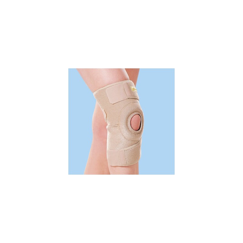 Neoprenowy zapinany stabilizator na staw kolanowy z osłoną rzepki z masy silikonowej. Wykonany z innowacyjnego neoprenu w opatentowanej technologii NEOPRENEDzięki otworowi na rzepkę pozwala na zmniejszenie jej ucisku oraz kontroluje tor ruchu w stawie rzepkowo-udowym. Dzięki zapinaniu na potrójny rzep zakładanie nawet przy dużych bólach spowodowanych urazem nie stanowi trudności.