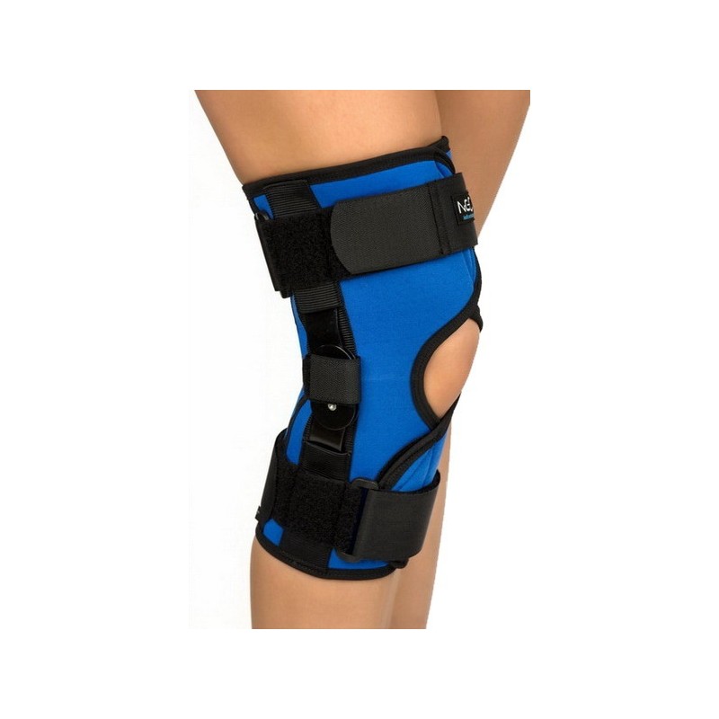 Orteza kolana K-05 typ otwarty z szynami dwuosiowymi, wykonana z termoaktywnego neoprenu.