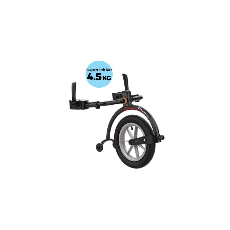 Dodatkowe przednie koło TRACK WHEEL jest to znaczące ulepszenie dla wózka inwalidzkiego podczas codziennych przepraw przez tereny miejskie ale także leśne oraz nawet piaszczyste! Sam montaż przystawki jest łatwy oraz komfortowy, nie wymagane są do tego jakiekolwiek narzędzia.