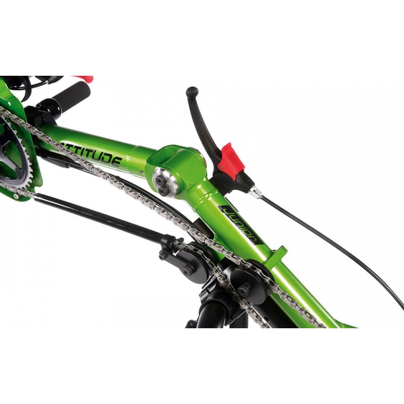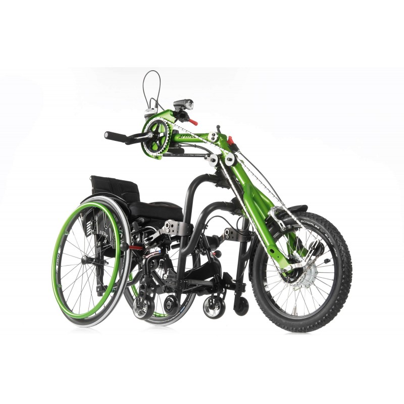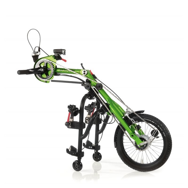 Przystawka rowerowa Attitude Junior posiada szeroką gammę funkcji podczas jazdy, pozwalając twojemu dziecku na pełną kontrolę nad urządzeniem, ucząc także jak zachowywać się podczas jazdy na drodze chodniku bądź ścieżkach rowerowych od najmłodszych lat. Koło przednie o średnicy 16 cali z ośmiostopniową przerzutką jak i poziomymi uchwytami dają nam pewność jazdy po zróżnicowanym terenie. O płynne hamowanie oraz dostosowanie prędkości dba niezawodny pedał hamulca znajdujący się na w okolicach podnóżka wózka, dbając o bezpieczeństwo dziecka podczas jazdy. Empulse Attitude Junior jest to niewielki oraz lekki rower z możliwością do podłączenia do wielu wózków inwalidzkich aktywnych nadając się do zabawy w każdym miejscu.