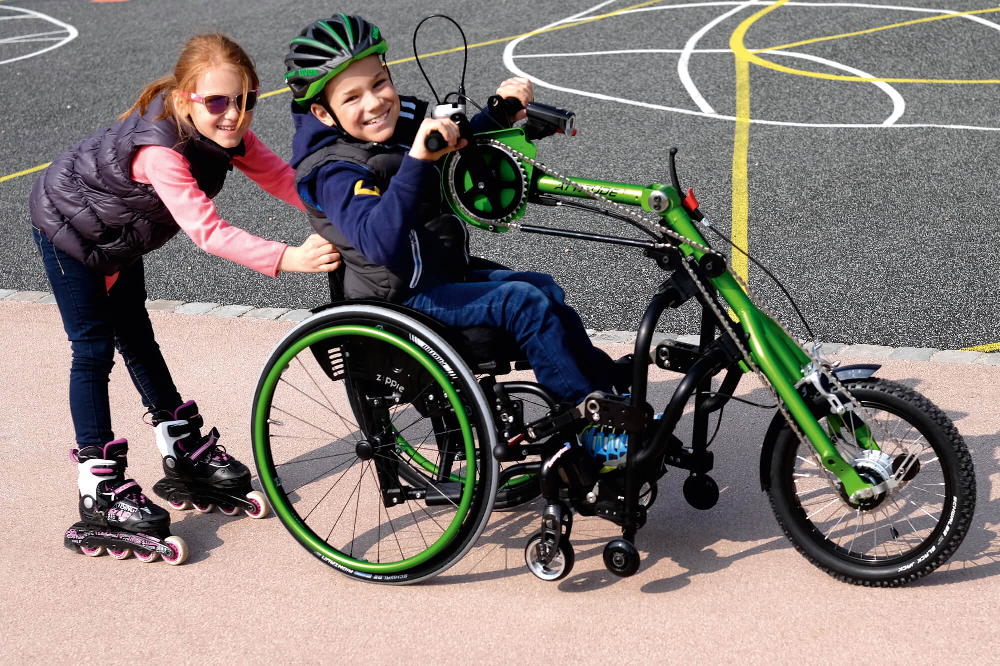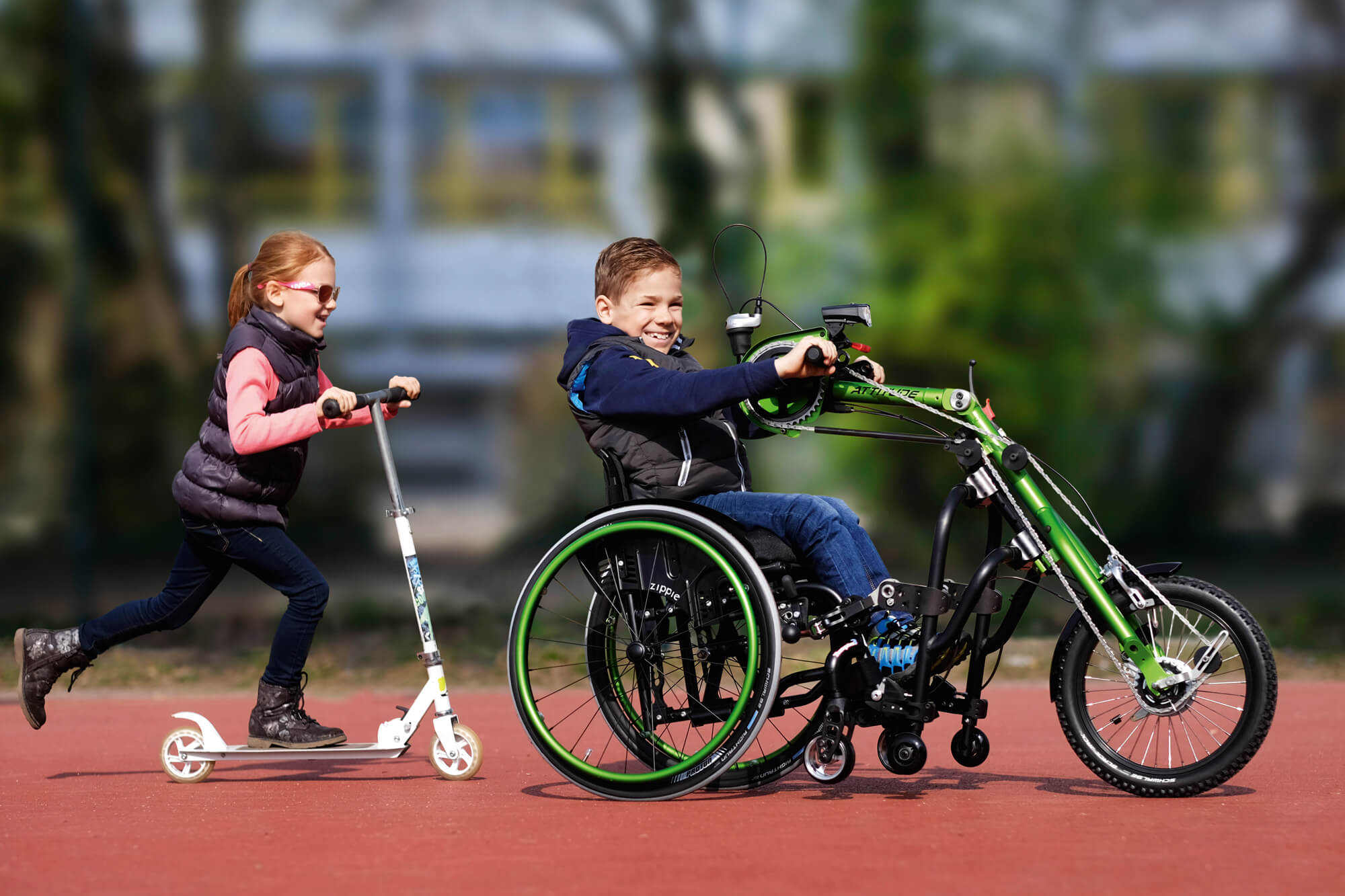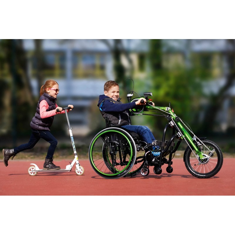 Empulse Attitude Junior jest to jedyna taka przystawka posiadająca cechy zarówno roweru, jak i przystawki do wózków inwalidzkich otwierając dla najmłodszych drogi do świata i poznawania przygód. Empulse Attitude Junior jest to jedyna taka przystawka rowerowa do wózka inwalidzkiego pozwalająca nawet najmłodszym użytkownikom na znajdowanie nowych szlaków jak i przygód, zachowując przy tym każdy wymiar bezpieczeństwa podczas jazdy. Przystawka pasuje do wielu różnych wózków inwalidzkich aktywnych w szczególności Quickie Life T, Quickie Life RT oraz wózek dziecięcy ZIPPIE Youngster 3.