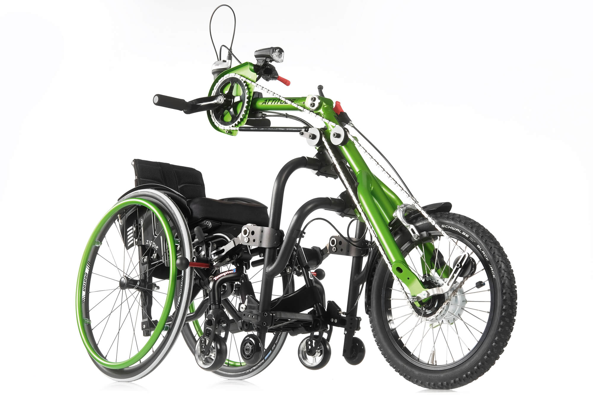 Innowacyjny mechanizm zastosowany w przystawce rowerowej Attitude pozwala na bardzo łatwe i szybkie zamontowanie do wózka w zaledwie kilka sekund nie wymagając przy tym wielkiego wkładu fizycznego, demontaż przystawki jest także bardzo szybki i przyjemny. Mechanizm łączący w przystawce rowerowej Attitude mocowany jest do przedniej części wózka inwalidzkiego, bez konieczności stosowania dodatkowych części lub plątaniny przewodów wokół kolan. Przekłada się to na komfort oraz wrażenia użytkownika podczas jazdy.