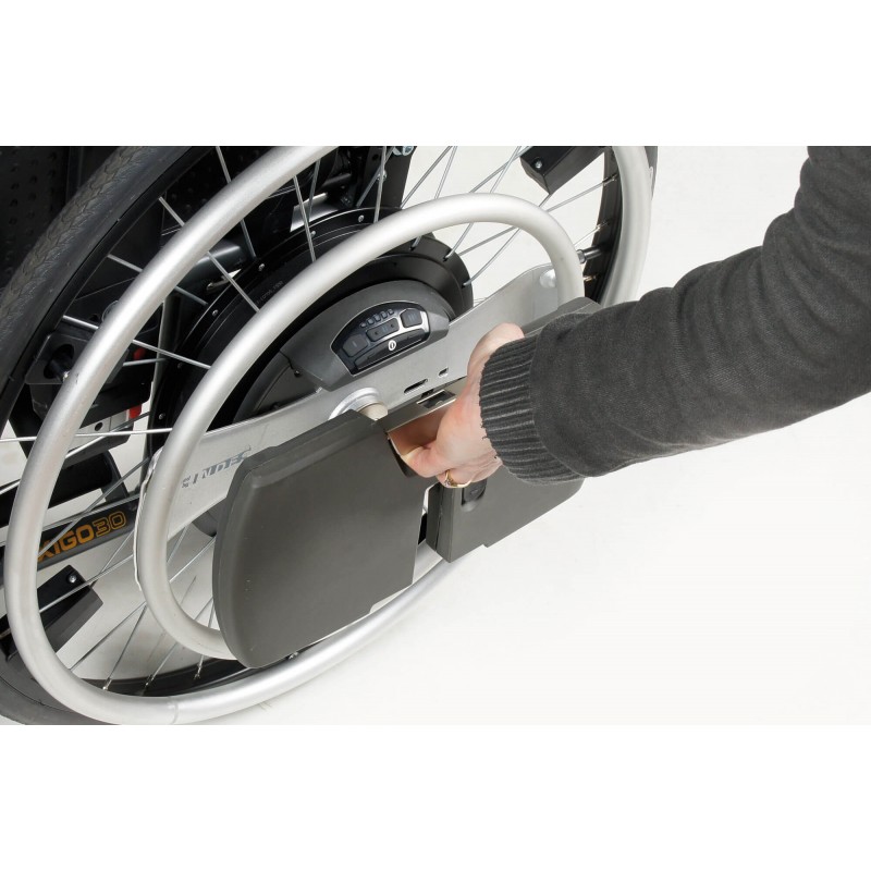 Dzięki wspomaganiu WheelDrive, korzystanie z wózka jest bardzo naturalne - użytkownik szybko przekonuje się, jak prosta jest zmiana użytkowanych obręczy. Łatwo dostępne przyciski, znajdujące się na kole, umożliwiają włączanie i wyłączanie systemu oraz ustawienie profilu jazdy - zapewniając prędkość do 10 km/h (obręcz pomocnicza) lub 6 km/h (obręcz napędowa). Nie trzeba się również obawiać utraty panowania nad wózkiem. Podczas jazdy w dół hamulce zadziałają automatycznie, aby zapewnić użytkownikowi maksymalne bezpieczeństwo!