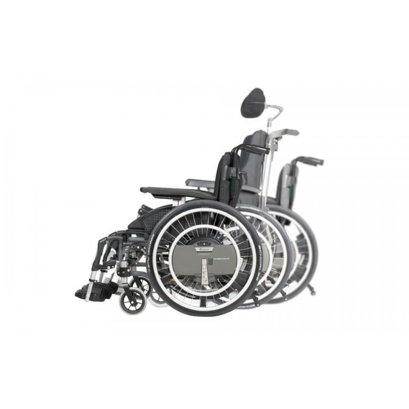 WheelDrive zupełna nowość na polskim rynku ułatwiająca codzienne przemieszczanie osobą poruszającym na wózku inwalidzkim, dodatkowo zapewnia korzyści terapeutyczne. Innowacyjny system dwóch obręczy daje możliwość wyboru pomiędzy wspomaganiem podczas jazdy, bądź stałym napędzie, który nie wymaga żadnego wysiłku przez użytkownika. Wybór pomiędzy rodzajem wsparcia nie wymaga żadnego przekładania jak i narzędzi wystarczy złapać obręcz od poszczególnego rodzaju wspomagania dzięki temu możemy cieszyć się większą mobilnością gdziekolwiek jesteśmy.