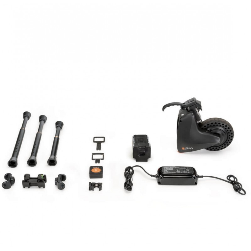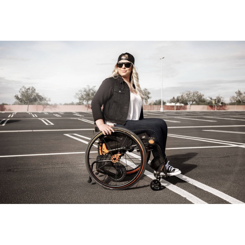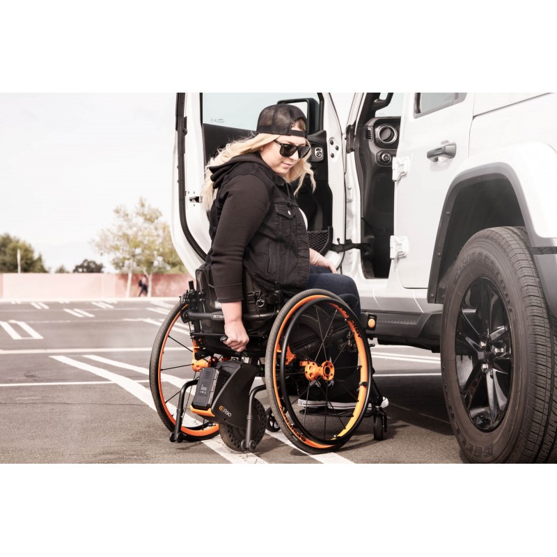 Zmień swoją jazdę dzięki Empulse R90, zaprojektowanemu tak, aby pasował do większości wózków na rmach sztywnych i składanych. Wytrzymały, ale lekki wspornik jest przymocowany do wózka i pozostaje na nim, podczas gdy R90 można łatwo odłączyć.