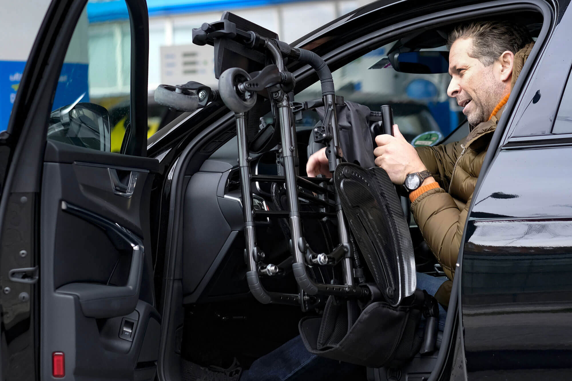 | Transport bez użytkownika: | Mocno i bezpiecznie zamocuj wózek w pojeździe (np. samochodzie) |