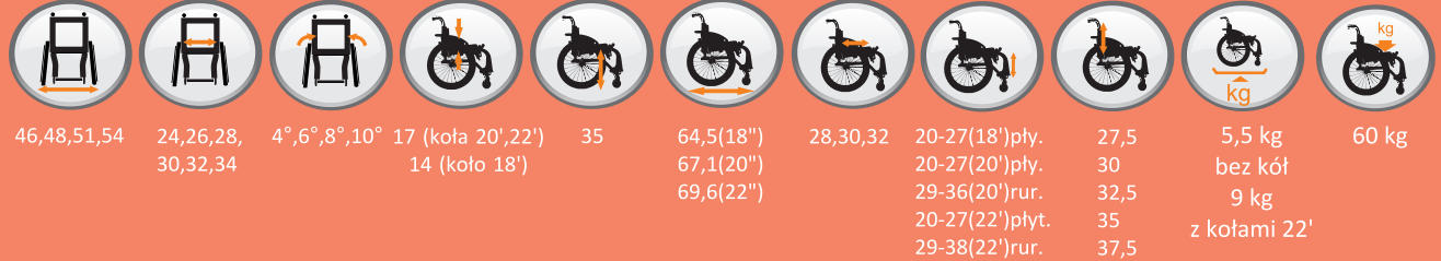| Szerokość wózka: | 46cm, 48cm, 51cm, 54cm |