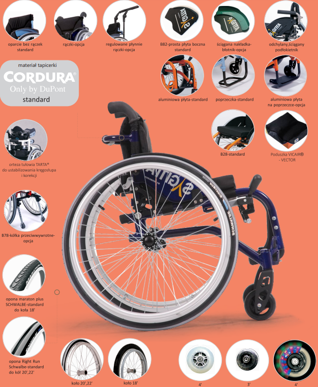 Aktywny wózek na sztywnej ramie z aluminium. Dedykowany dla dzieci, które samodzielnie poruszają się na wózku. Niezastąpiony w codziennym życiu. Szkoła , przedszkole, zabawa na podwórku nie stanowią bariery. Dzięki Sagicie dziecko uczy się samodzielności i aktywnego funkcjonowania w swoim środowisku. Z Sagittą Dziecko od wczesnych lat przygotuje się do aktywnego funkcjonowania w przyszłym życiu.