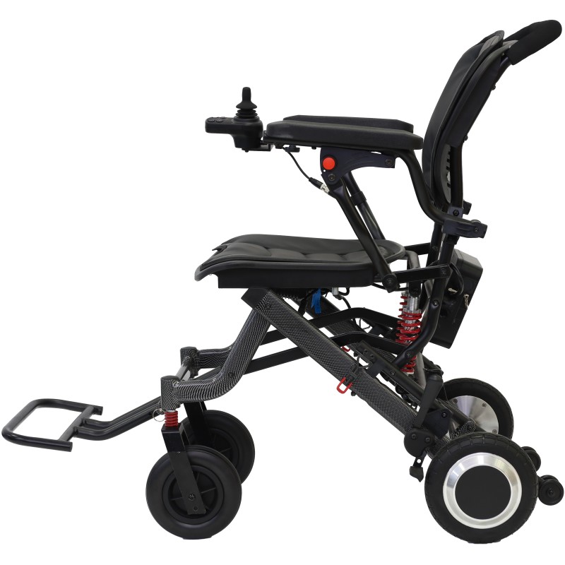 Elektryczny wózek inwalidzki to nowoczesne, innowacyjne rozwiązanie zapewniające wygodę i bezpieczeństwo dla osób niepełnosprawnych. Jego ultralekka konstrukcja z aluminiowej ramy pokrytej karbonem gwarantuje łatwość transportu oraz długotrwałe użytkowanie. Wózek jest wyposażony w odchylane podłokietniki, regulowaną długość podnóżka, co umożliwia indywidualne dostosowanie do potrzeb użytkownika. Dodatkową funkcjonalnością są hamulce postojowe oraz cztery amortyzatory, zarówno przednie, jak i tylne, które zapewniają stabilność i komfort nawet na nierównym terenie.