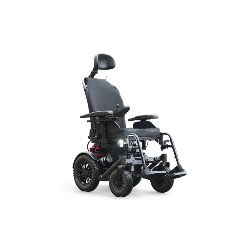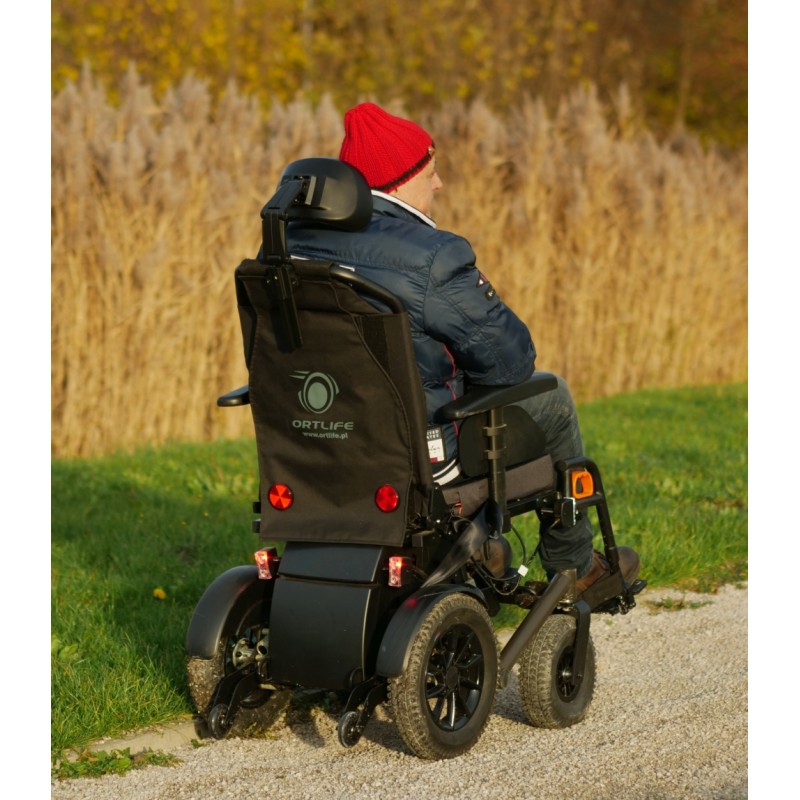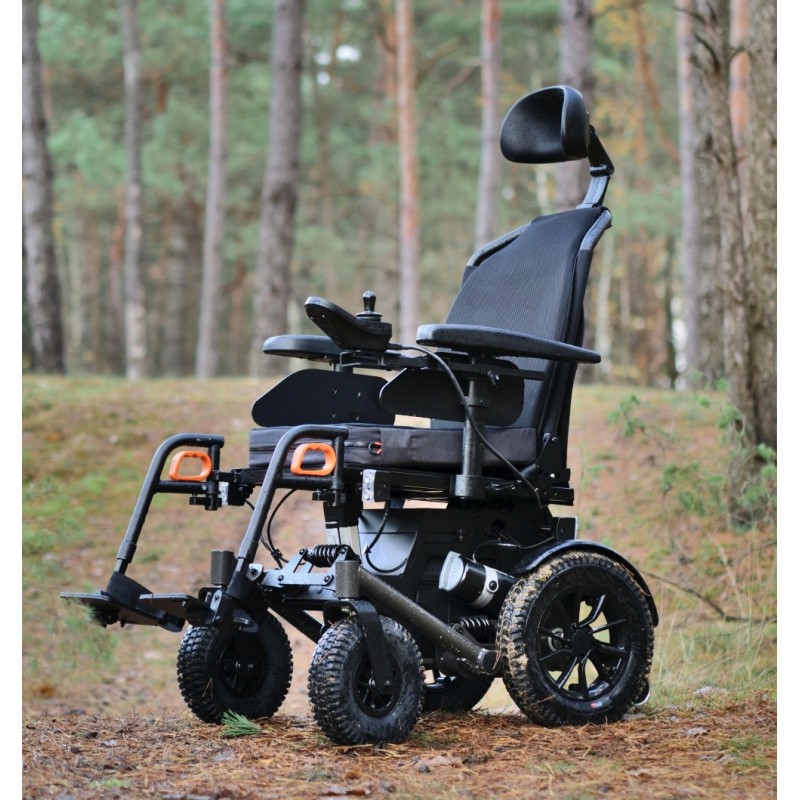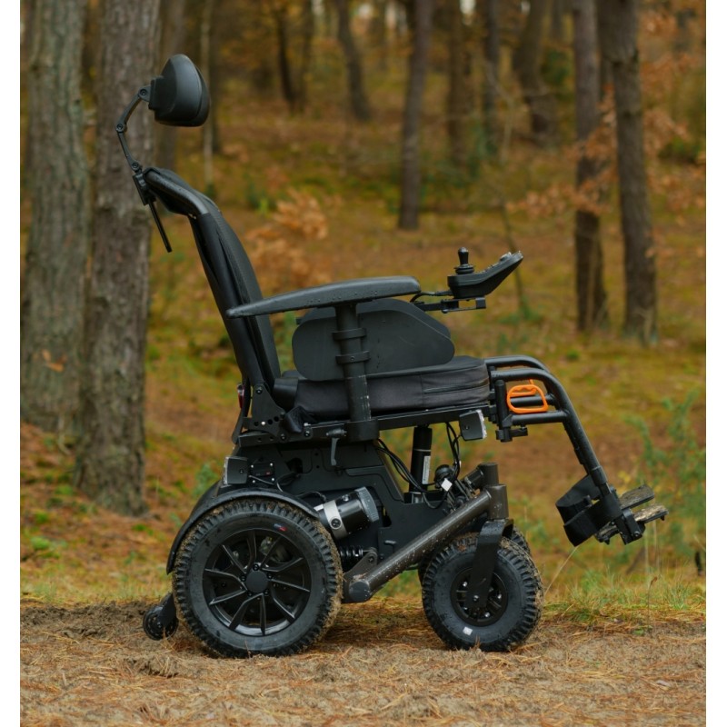 Dzięki zwiększonemu prześwitowi wózek bez problemu pokonuje przeszkody i radzi sobie w trudniejszym terenie, oferując większą niezależność użytkownikowi.