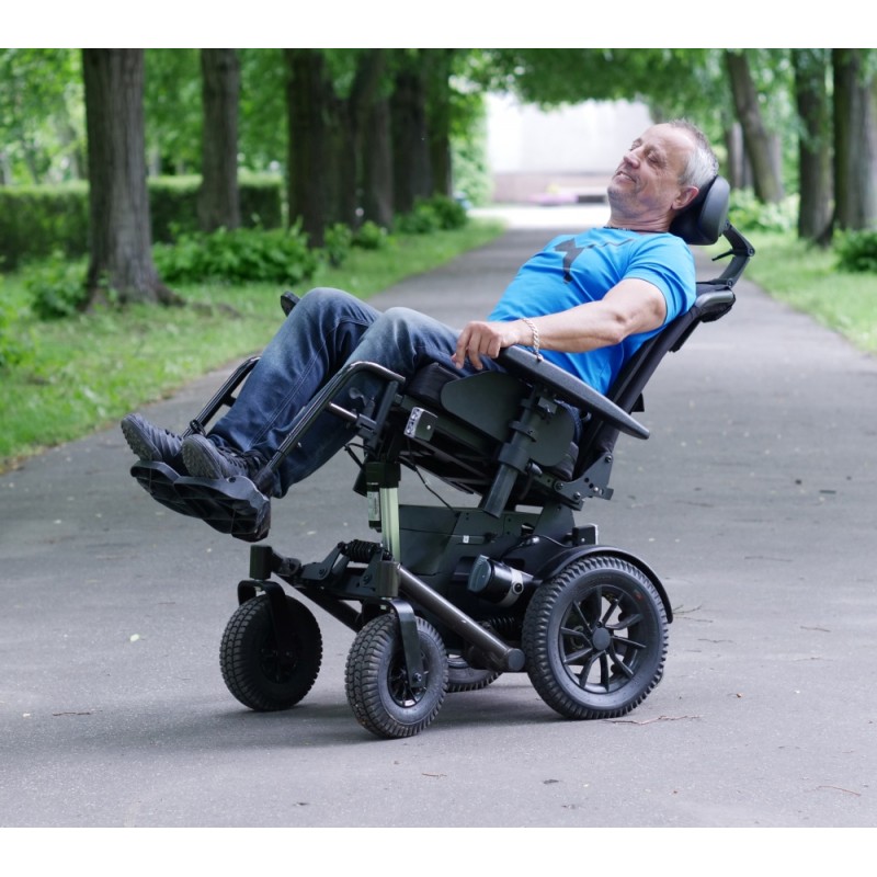 Manualna regulacja kąta oparcia oraz elektryczna regulacja siedziska do pozycji półleżącej umożliwiają precyzyjne dopasowanie ustawień do indywidualnych potrzeb. Dodatkowa regulacja szerokości i głębokości siedziska pozwala jeszcze lepiej dopasować wózek do budowy ciała użytkownika.