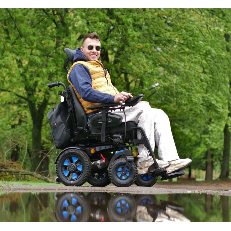Hawk E100 to elektryczny wózek inwalidzki stworzony dla osób, które oczekują mocy, niezawodności i pełnej kontroli w codziennym użytkowaniu. Dzięki silnikom o wysokim momencie obrotowym oraz nowoczesnemu systemowi sterowania jazda jest płynna i stabilna – zarówno na równych nawierzchniach, jak i w trudniejszym terenie.