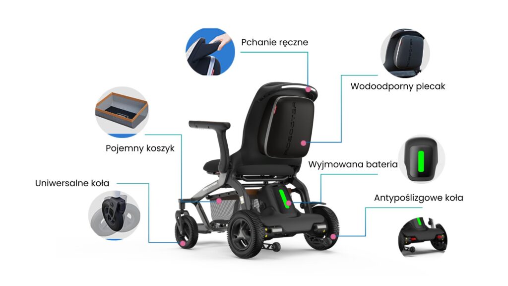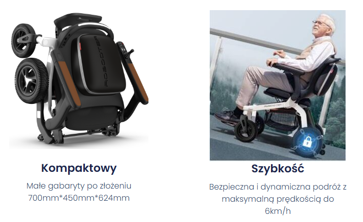 Robooter E40 to inteligentny, składany wózek elektryczny, który łączy moc, wygodę i zaawansowaną technologię. Idealny zarówno do poruszania się w pomieszczeniach, jak i na zewnątrz. Jego kompaktowa konstrukcja sprawia, że podróżowanie z nim jest dziecinnie proste – złożenie i rozłożenie zajmuje tylko chwilę. Dzięki funkcjom takim jak tempomat, sterowanie telefonem czy wbudowane oświetlenie LED, jazda staje się płynna, komfortowa i bezpieczna. Robooter E40 to idealne rozwiązanie dla tych, którzy cenią mobilność, niezawodność i prostotę obsługi.