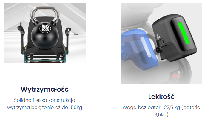 | Waga bez baterii: | 22,5 kg (bateria: 3,5 kg) |