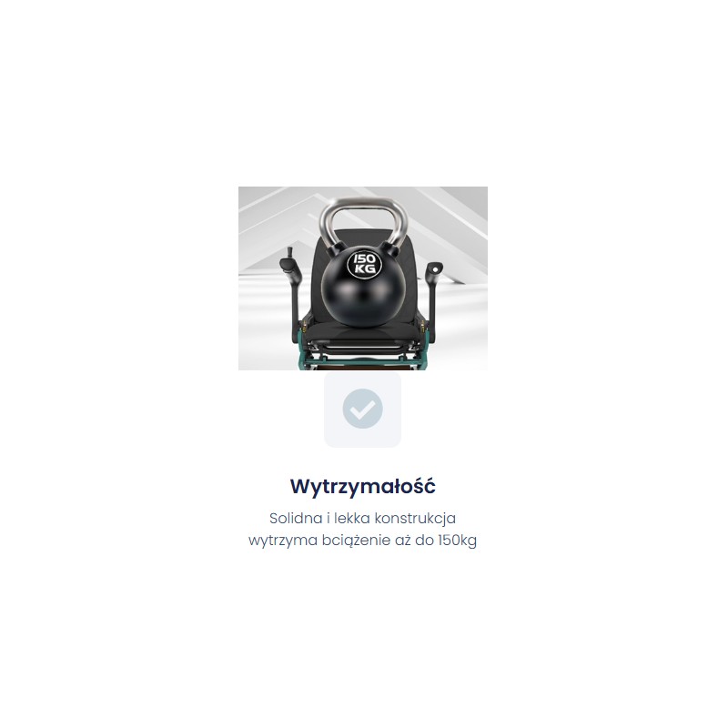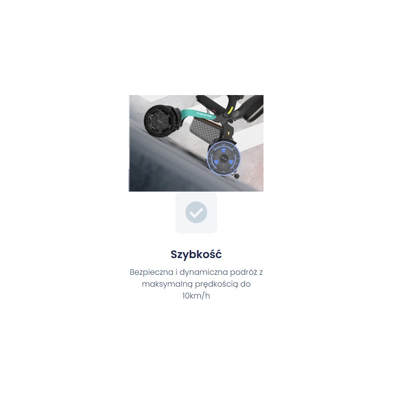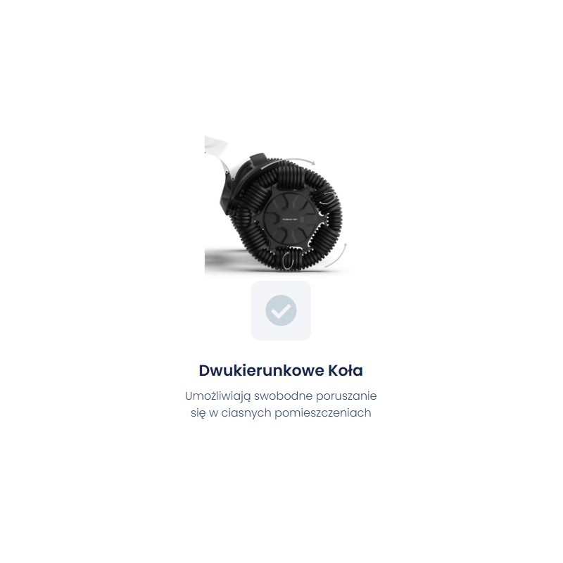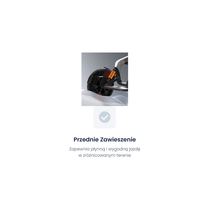 Dzięki większym i bardziej zaawansowanym kołom świetnie nadaje się do jazdy po trudnej powierzchni. Przednie koła wyposażono w podwójny zestaw sprężyn zawieszenia o wysokiej sile skrętnej, które skutecznie amortyzują wstrząsy na nierównych nawierzchniach. Dzięki temu rozwiązaniu użytkownicy mogą cieszyć się stabilnym i komfortowym prowadzeniem wózka.