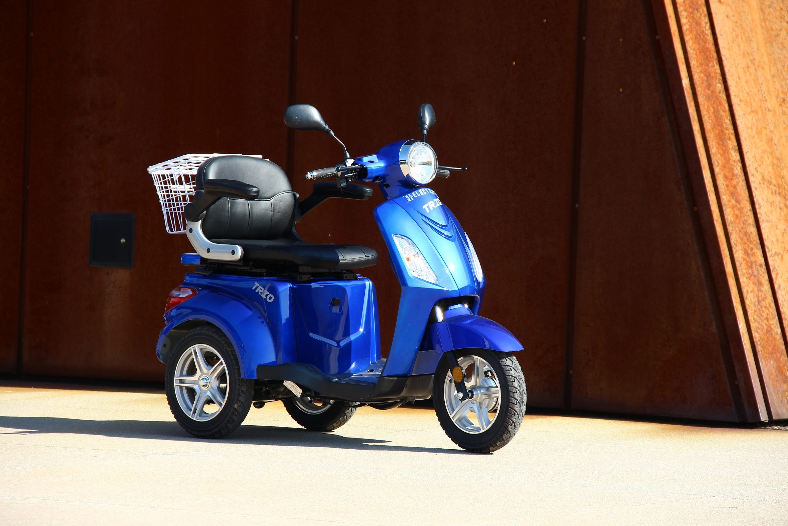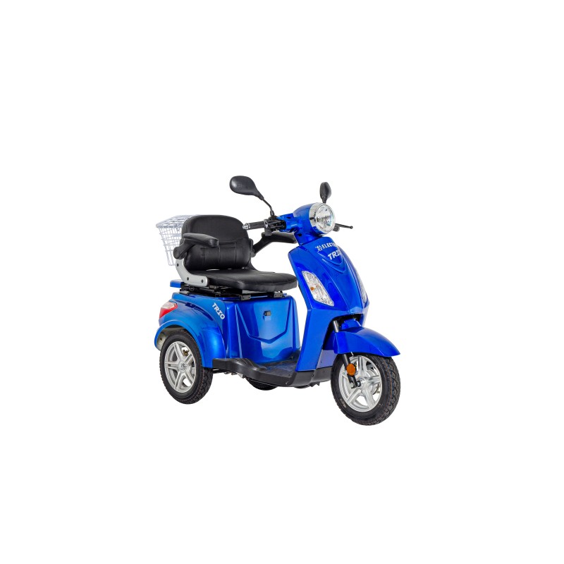 Skuter Trio jest trójkołowym kuzynem modelu FASTER. Dzięki temu że posiada jedno koło przednie skuter ten może wyróżnić się wyjątkową skrętnością oraz zwinnością. Trio może się pochwalić wyśmienitym hamulcem elektromagnetycznym, który wyróżnia po zwolnieniu gazu samoczynnie hamuje przy niskich prędkościach. Dzięki czemu skuter zapewnia bezpieczeństwo użytkownika podczas przemieszczania się poza domem.