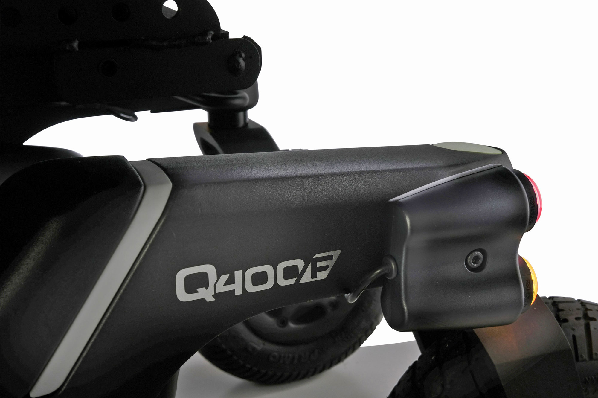 Ciesz się wygodnym i bezpiecznym doświadczeniem z jazdy z nowym Quickie Q400. Świetna manewrowość w środowisku zewnętrznym ze względu na dzięki jego silnikom połączonymi z jego 6 kołowym podwoziem i kompaktowym kątem skrętu co jest także zaletą w środowisku wewnętrznym. Dodatkowo wózek radzi sobie wyśmienicie w ciężkim terenie dzięki 6 kołowym podwoziu które poradzi sobie ze wszystkimi nierównościami terenowymi zapobiegając możliwości przewrócenia się oraz zapewniając najlepszą przyczepność.