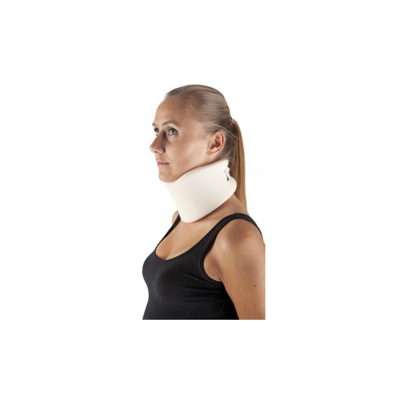 Jednoczęściowy, miękki kołnierz wykonany z pianki o wysokiej gęstości powleczonej bawełnianą tkaniną antyalergiczną, posiada wyprofilowanie anatomiczne w przedniej górnej części.