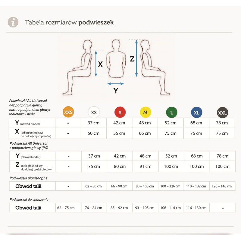 – dla osób, które potrzebują dodatkowego podparcia wokół głowy (opcja podwieszki z podparciem głowy)
