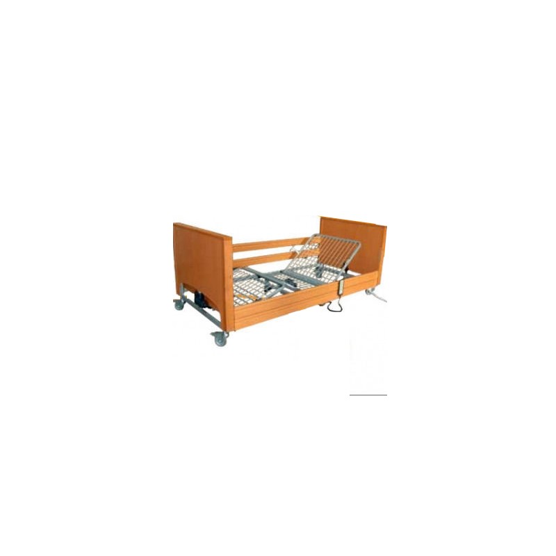 Łóżko rehabilitacyjne Elbur 337 wersja obniżona przeznaczone jest do rehabilitacji i pielęgnacji pacjentów w domach oraz ośrodkach opiekuńczych jak i w szpitalach. Dzięki swoim drewnianym elementom w kolorze buku, drewnianym frontom oraz częściom metalowym malowanym proszkowo w kolorze srebrnym to wysokiej jakości łóżko pielęgnacyjne doskonale komponuje się z otoczeniem. Powierzchnia leża wypełniona jest listwami sprężynującymi. Leże podzielone jest na 4 segmenty i posiada 2 pojedyncze silniki sterowane indywidualnie, a ponadto regulowany segment podudzia poprzez mechanizmy zapadkowe.Komfortowe sterowanie łóżka realizowane jest za pomocą pilota, posiadającego możliwość blokady poszczególnych pozycji łóżka. Na końcach barierek bocznych leża znajdują się sprężynujące nakładki z tworzywa sztucznego powodujące zmniejszanie odległości pomiędzy barierkami a frontem.